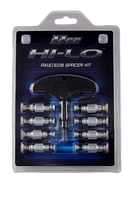 The Hi-Lo Roller Hockey Axle/Spacer Kit is replacement 6mm axles and 608 bearing spacers for a wide range of roller hockey skates. Included are a total of 8 axles, 8 bearing spacers, and one axle tool which allows players to swap out their axles and spacers on both skates.